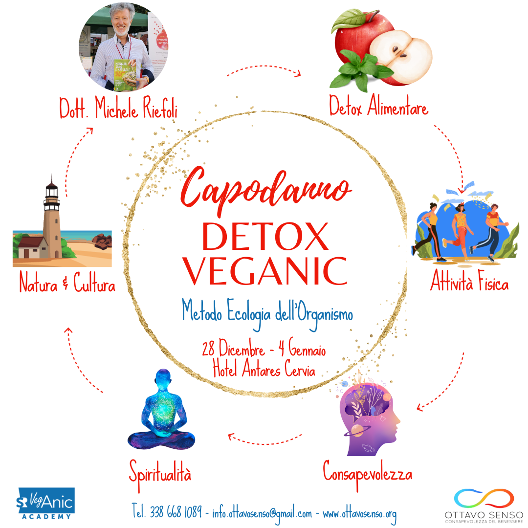 Un’occasione importante per dare inizio o continuare la tua purificazione è il Detox Veganic, che da oltre 20 anni conduce il Dott. Michele Riefoli, Biologo Nutrizionista e Chinesiologo, Autore di libri sulla consapevolezza alimentare, mentale e spirituale che da più di 40 anni aiuta le persone a vivere sano e naturale, risvegliando la parte migliore di sè per liberarsi dai comportamenti dannosi per realizzare la missione della propria Coscienza Spirituale.