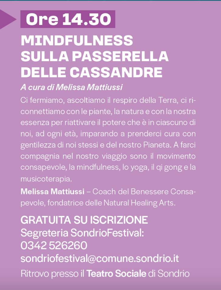 Iscrizione entro il 5 Settembre scrivendo a: info@melissamattiussi.it